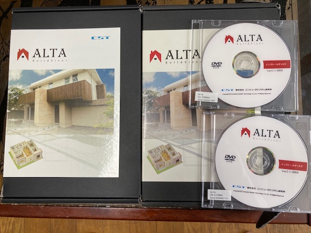「Alta」のインストールDVDをヤフオクから入手致しました。出入りの会社のアルタVer5はダウンロード版でインストールDVDはなくあきらめていたところ、ヤフオクにグットタイミングの破産品が出てきました。商品到着後早速、インストールし起動確認もできてひと安心しました。